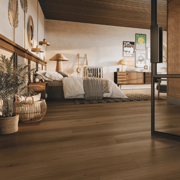 Sol PVC rigid haut de gamme idéal pour les zones de passage domestiques, salon, cuisine, chambre, salles de bain et les locaux commerciaux à usage élevé tels que bureaux, bâtiments publics.