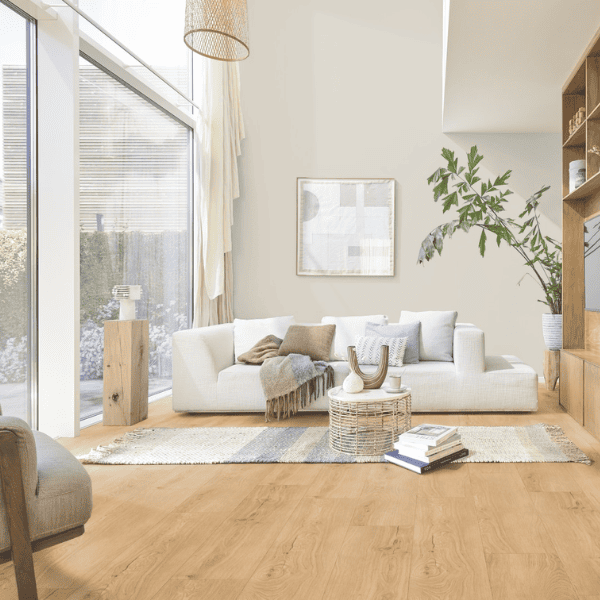 Sol PVC rigid haut de gamme idéal pour les zones de passage domestiques, salon, cuisine, chambre, salles de bain et les locaux commerciaux à usage élevé tels que bureaux, bâtiments publics.